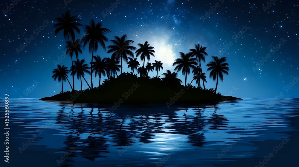 Silhouette Of A Small Island With Palm Trees Wallpaper Mural - Decorly Solutions | Decorly Solutions