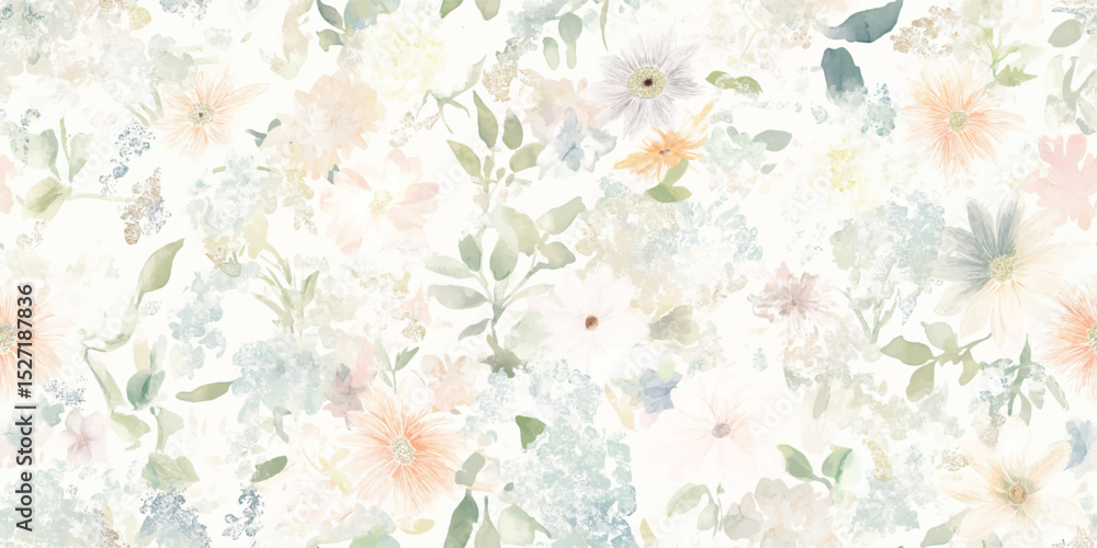 Subtle Watercolor Floral Seamless Pattern Delicate Botanical Bloom Wallpaper Mural - Decorly Solutions | Decorly Solutions