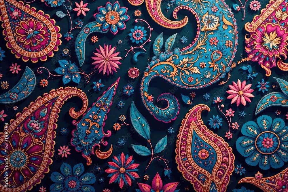 Intricate Paisley Pattern In Rich Jewel Tones Swirling Wallpaper Mural - Decorly Solutions | Decorly Solutions
