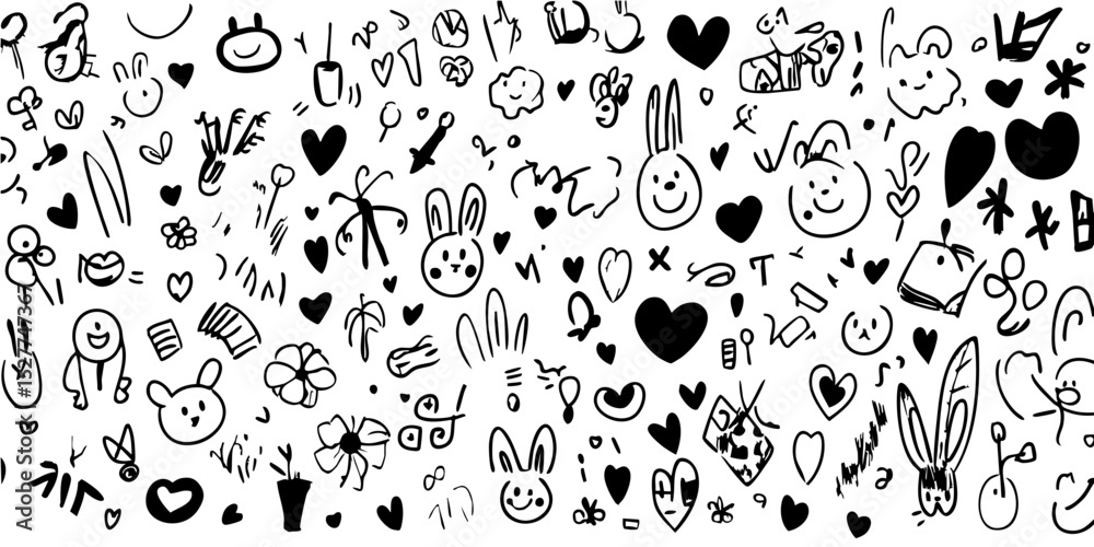 Abstract Doodle Art With Hearts Faces And Animals Wallpaper Mural - Decorly Solutions | Decorly Solutions