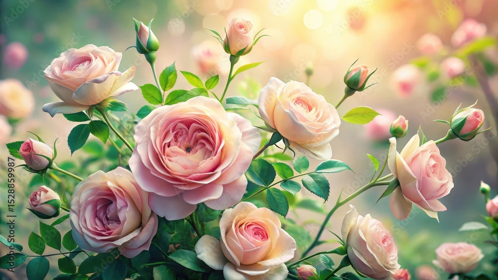 A Delicate Cluster Of Blush-colored Roses In Full Wallpaper Mural - Decorly Solutions | Decorly Solutions