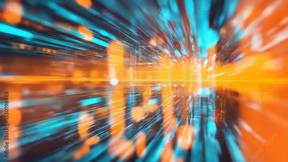Abstract rendering of digital data tunnel with binary code and glowing light effects