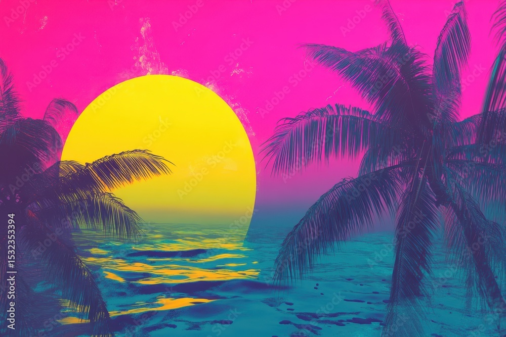 Vibrant Tropical Sunset With Palm Trees And Ocean Wallpaper Mural - Decorly Solutions | Decorly Solutions