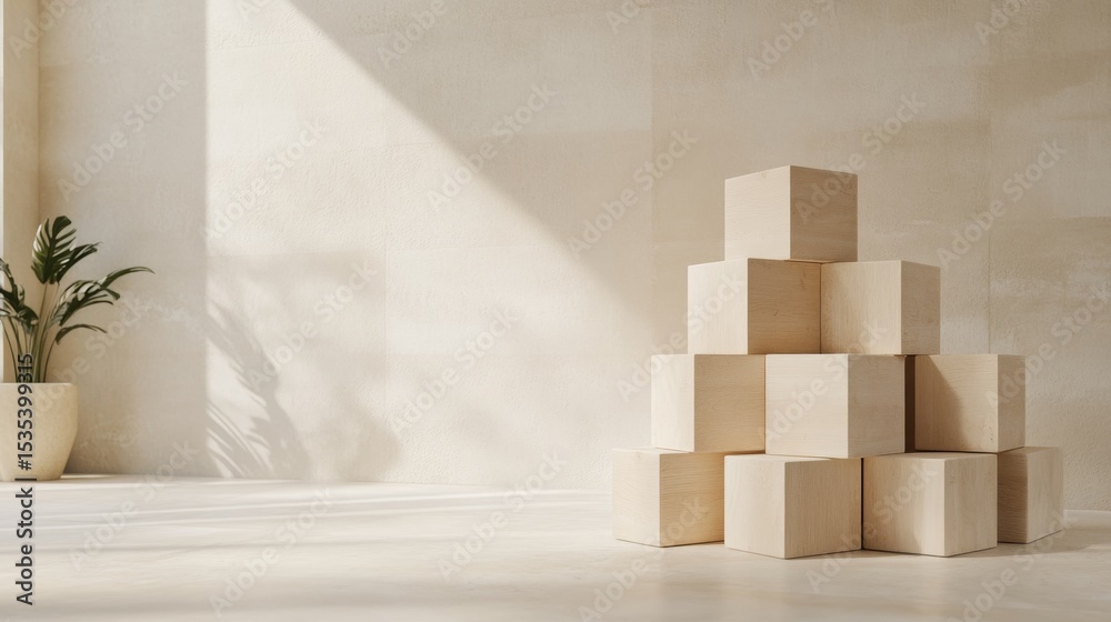 Minimalist Interior Design Stack Of Light Wooden Cubes Wallpaper Mural - Decorly Solutions | Decorly Solutions