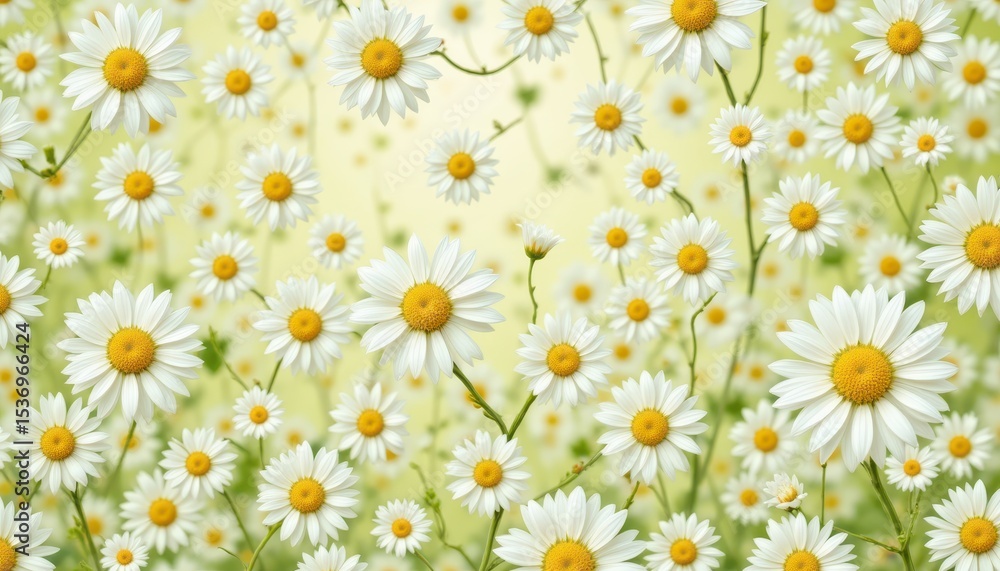 Delicate daisy field backdrop, a charming floral illustration, pastel spring hues, fresh botanical