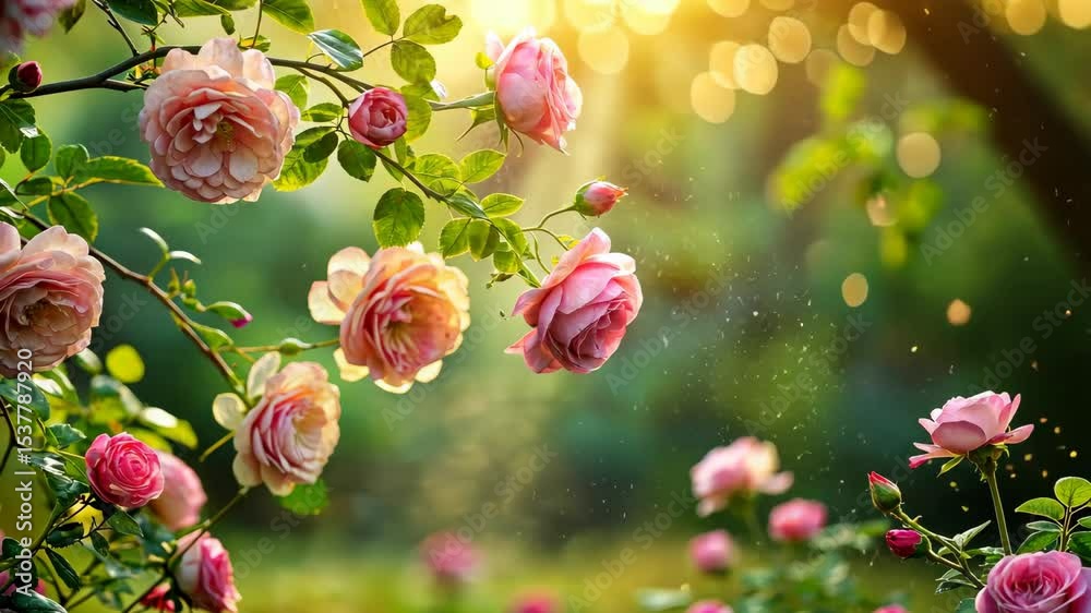 Pink Roses Bloom In The Golden Sunlight Of Wallpaper Mural - Decorly Solutions | Decorly Solutions