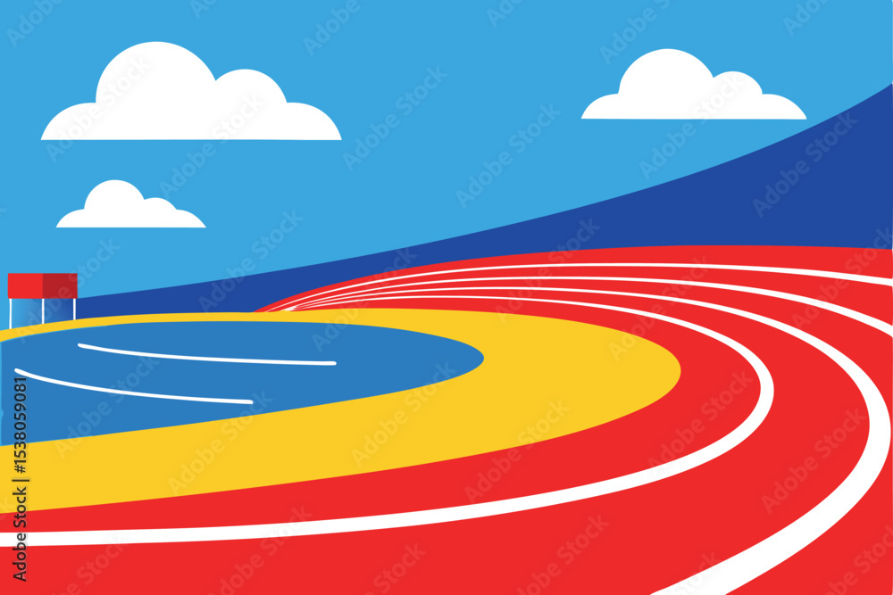 A Colorful Illustration Of A Running Track With A Vibrant Design