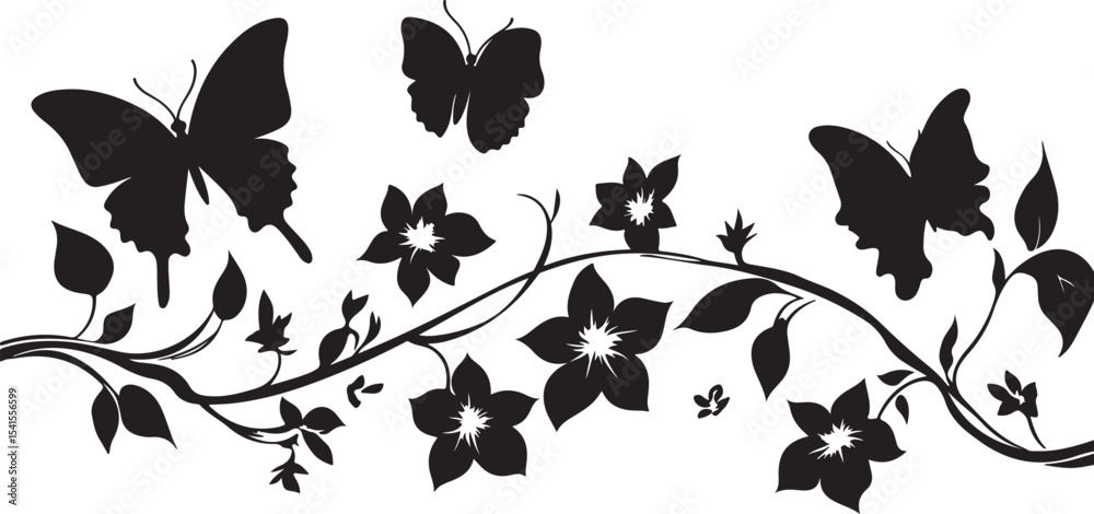 Elegant Floral Vine With Butterflies Silhouette Design On Wallpaper Mural - Decorly Solutions | Decorly Solutions