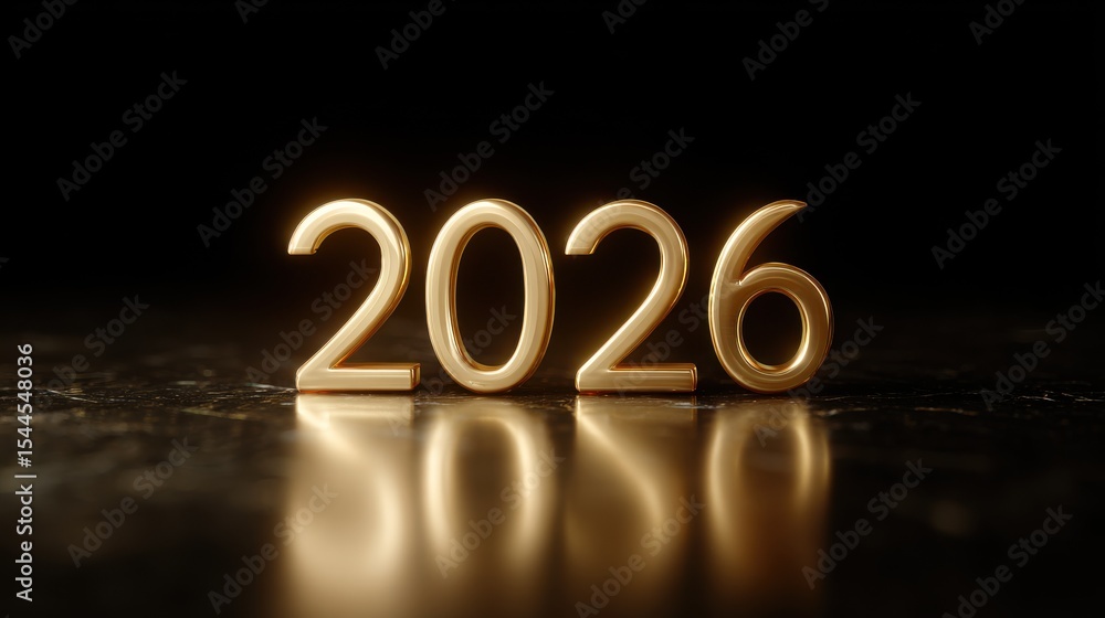 Luxurious Golden 2026 Numbers With Reflection On A Wallpaper Mural - Decorly Solutions | Decorly Solutions