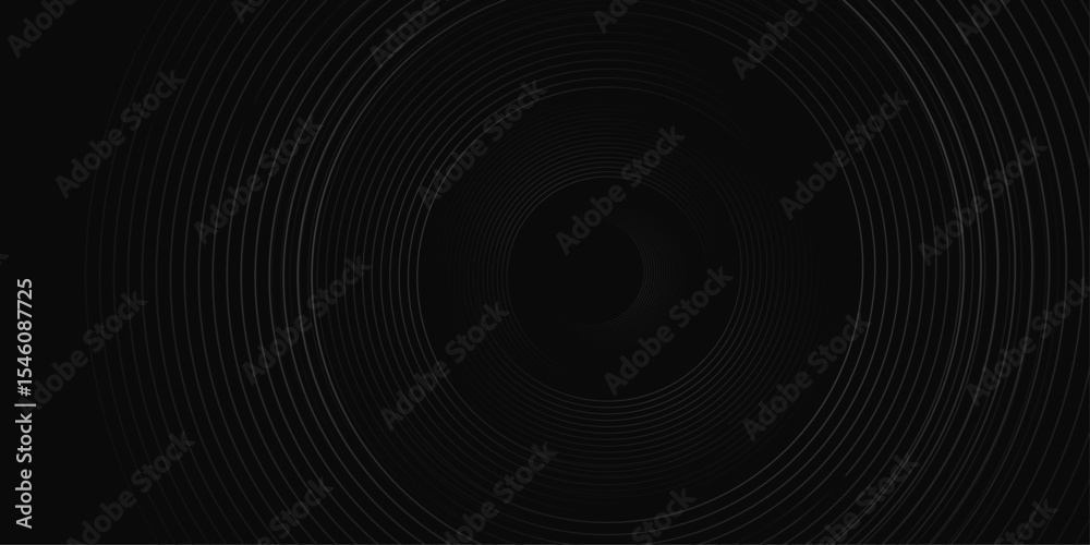 Dark Grey Circular Spiral Lines Abstract Futuristic Tech Background. Vector Minimal Black Design