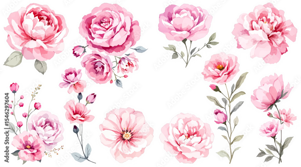 Set Of Roses Set Pink And White Flowers Wallpaper Mural - Decorly Solutions | Decorly Solutions