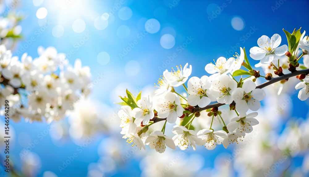 Beautiful White Blossom Branch Against Bright Blue Sky Wallpaper Mural - Decorly Solutions | Decorly Solutions