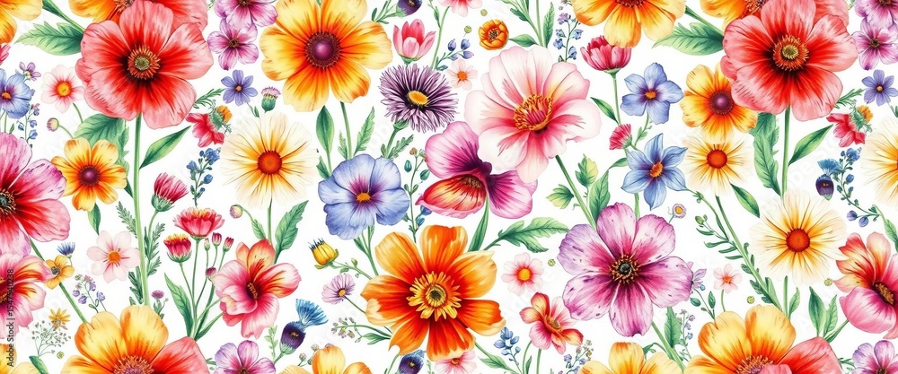 Vibrant Watercolor Wildflower Seamless Pattern Hand-drawn Botanical Illustration Wallpaper Mural - Decorly Solutions | Decorly Solutions