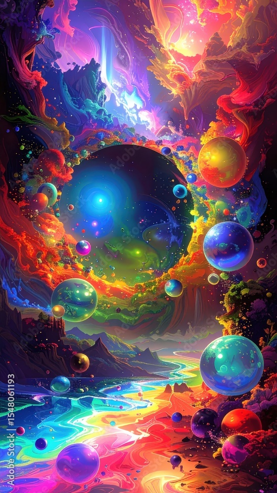 「極彩色の幻想アート|カラフルな抽象デジタルイラスト素材」 Wallpaper Mural - Decorly Solutions | Decorly Solutions