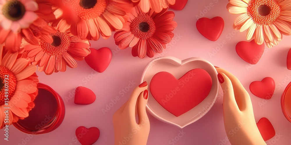 Romantic Heart Shape Arrangement With Hands And Flowers Wallpaper Mural - Decorly Solutions | Decorly Solutions