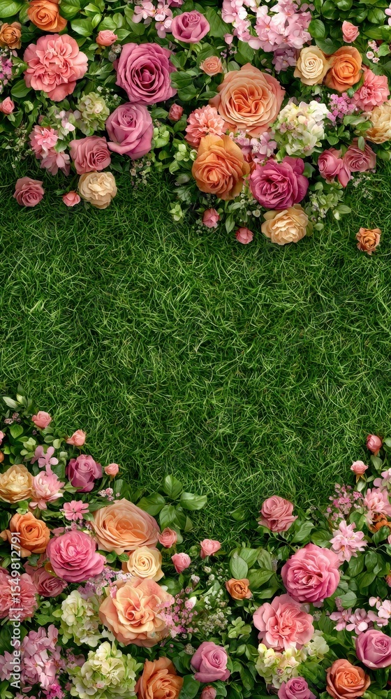Floral Background With Colorful Roses And Green Grass Wallpaper Mural - Decorly Solutions | Decorly Solutions