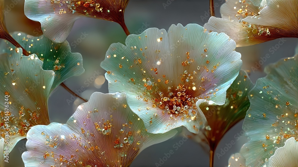 Vibrant Floral Art with Dew Drops and Bubbles