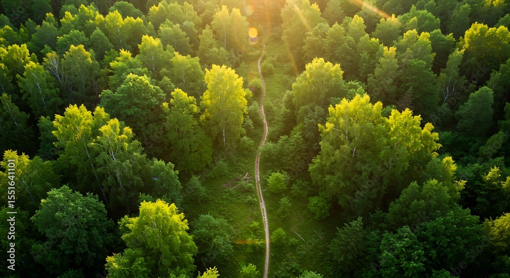 Lush Green Forest Canopy in Soft Sunlight – Vibrant Nature Aerial View