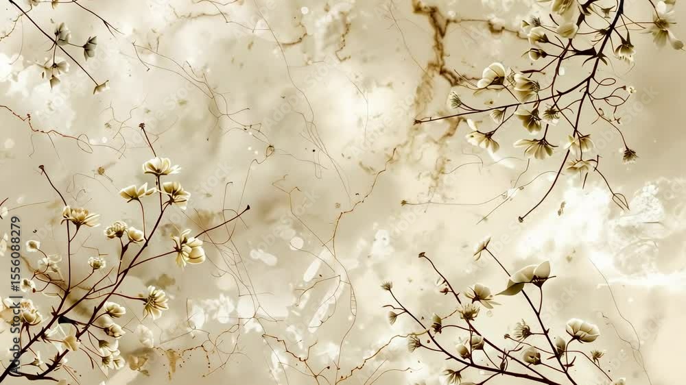 Floral Marble Background Beige Blossoms And Elegant Veins Wallpaper Mural - Decorly Solutions | Decorly Solutions
