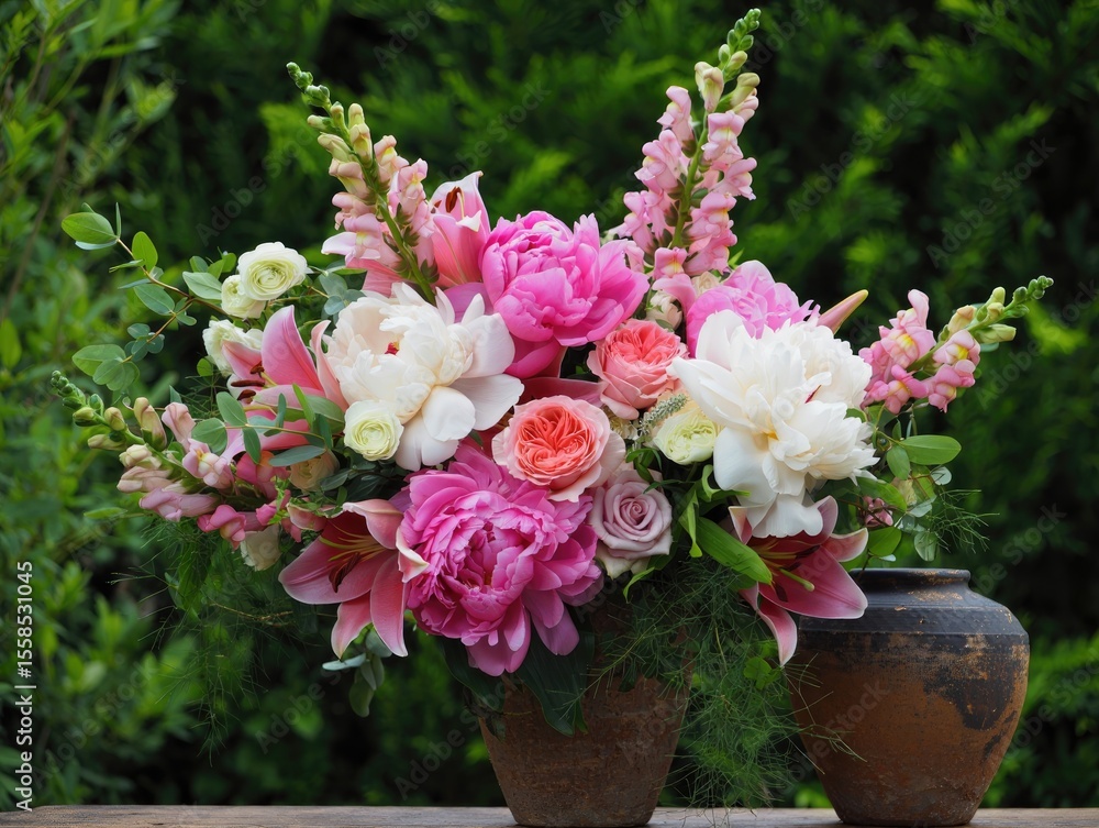 Beautiful floral bouquet with pink and white peonies lilies Wallpaper