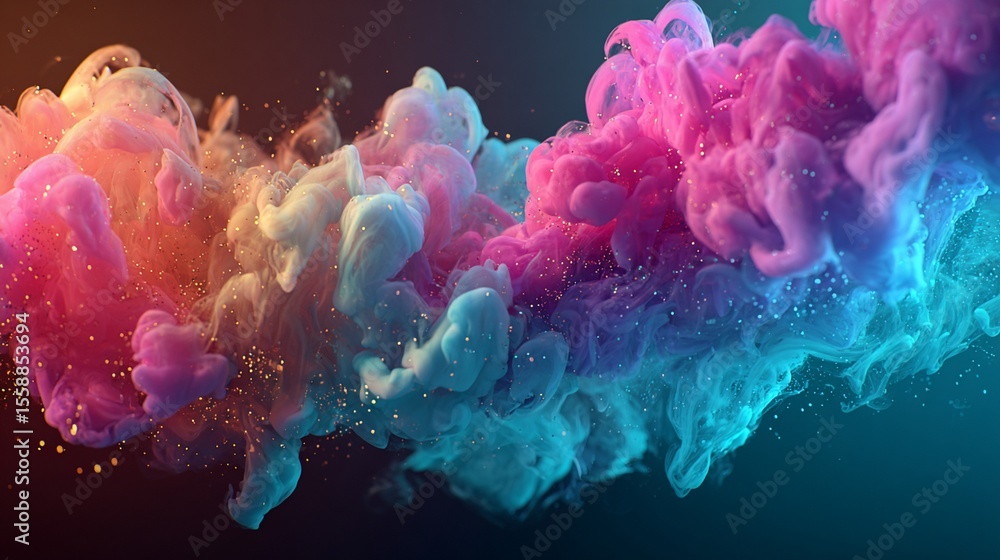 Spectacular colorful ink explosion creating a mesmerizing abstract artistic cloud formation