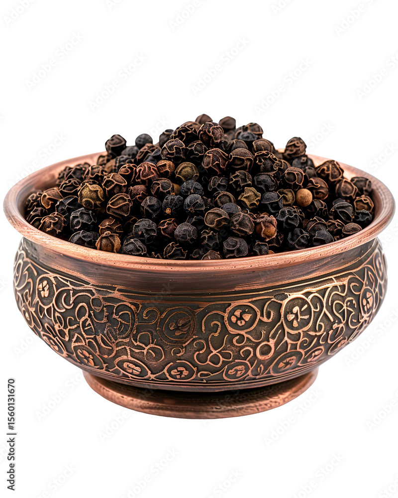 Black Peppercorns In Ornate Copper Bowl Spice Cooking Wallpaper Mural - Decorly Solutions | Decorly Solutions