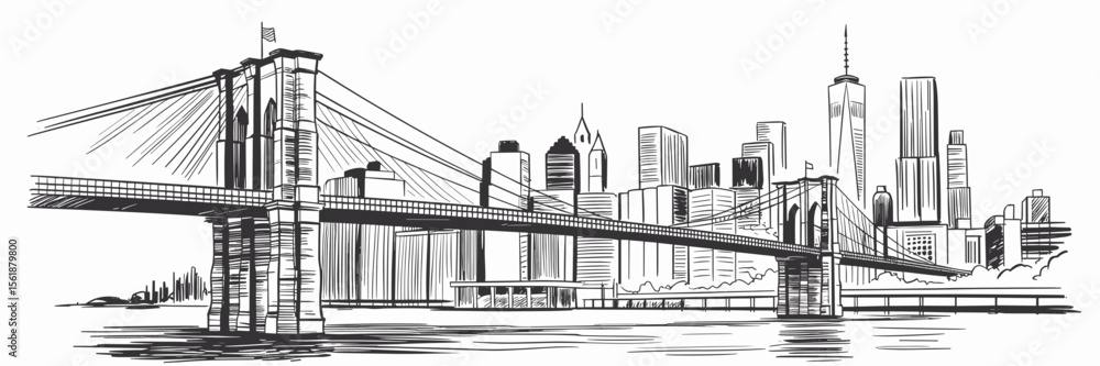New York City Skyline Drawing With Brooklyn Bridge Wallpaper Mural - Decorly Solutions | Decorly Solutions