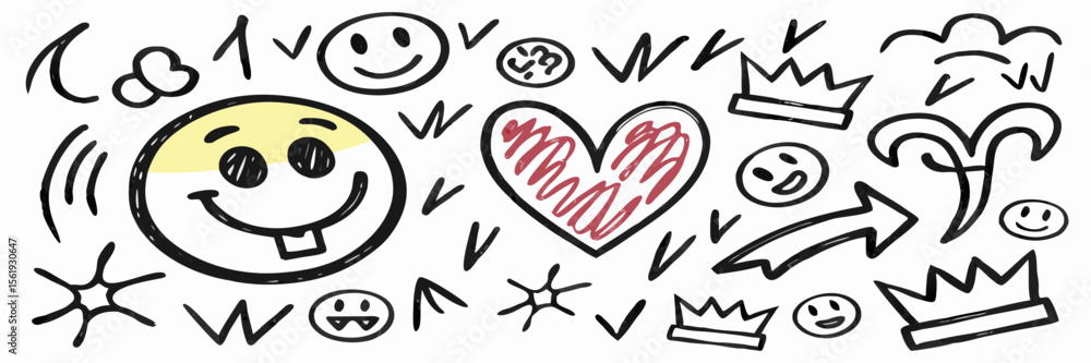 Hand-drawn Emojis Hearts And Crowns Doodle Background Wallpaper Mural - Decorly Solutions | Decorly Solutions
