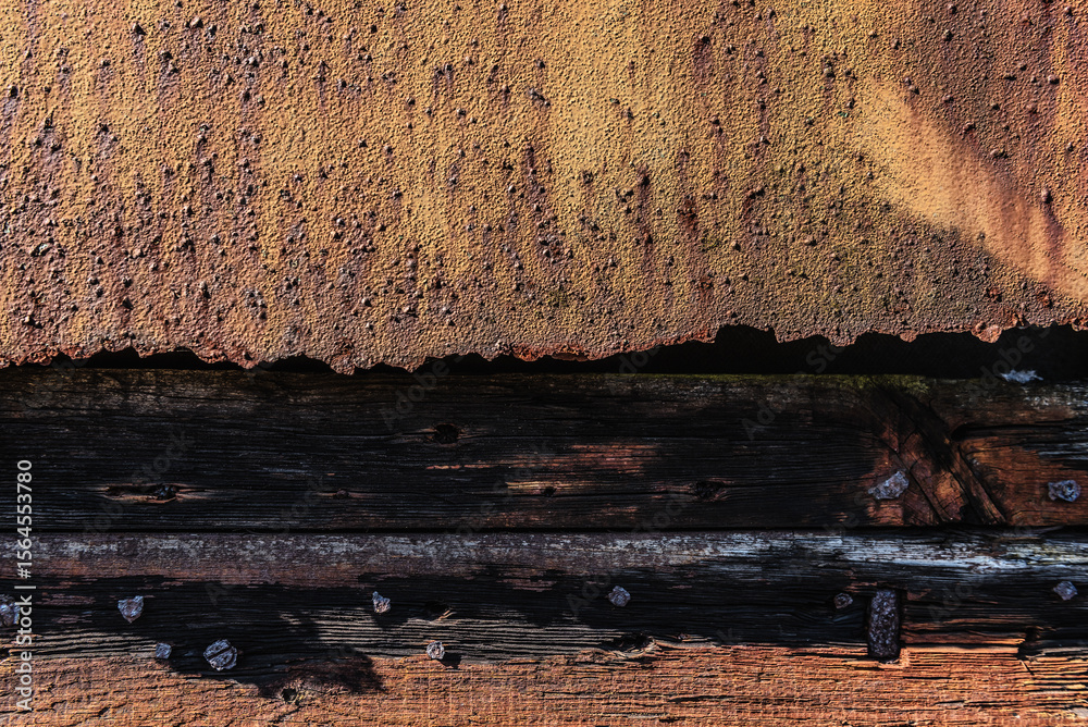 STEEL AND WOOD - Peeling paint and rust on iron Wallpaper