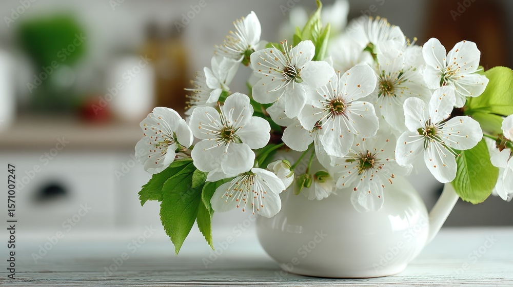 White Blossoms In A Vase Airy Bright Kitchen Wallpaper Mural - Decorly Solutions | Decorly Solutions