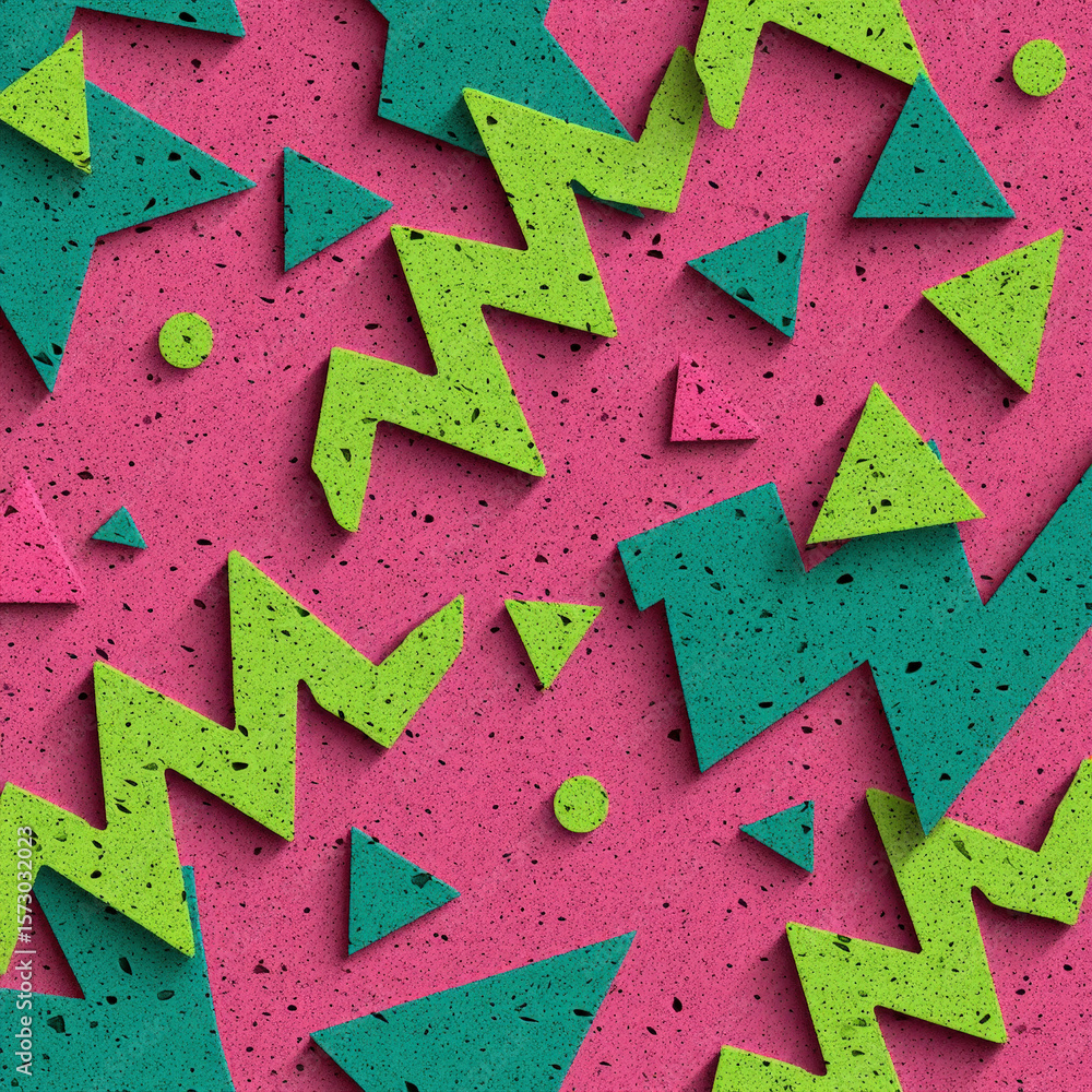 Colorful Seamless Pattern Featuring Zigzag Lines, Squiggles, Triangles, and Geometric Shapes on a Vibrant Background