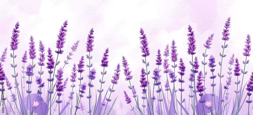 Watercolor Lavender Flowers Border With Purple Paint Splashes Wallpaper Mural - Decorly Solutions | Decorly Solutions