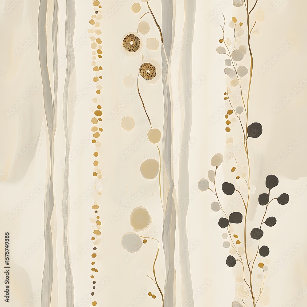 Abstract Beige Floral Botanical Art Print Wallpaper
