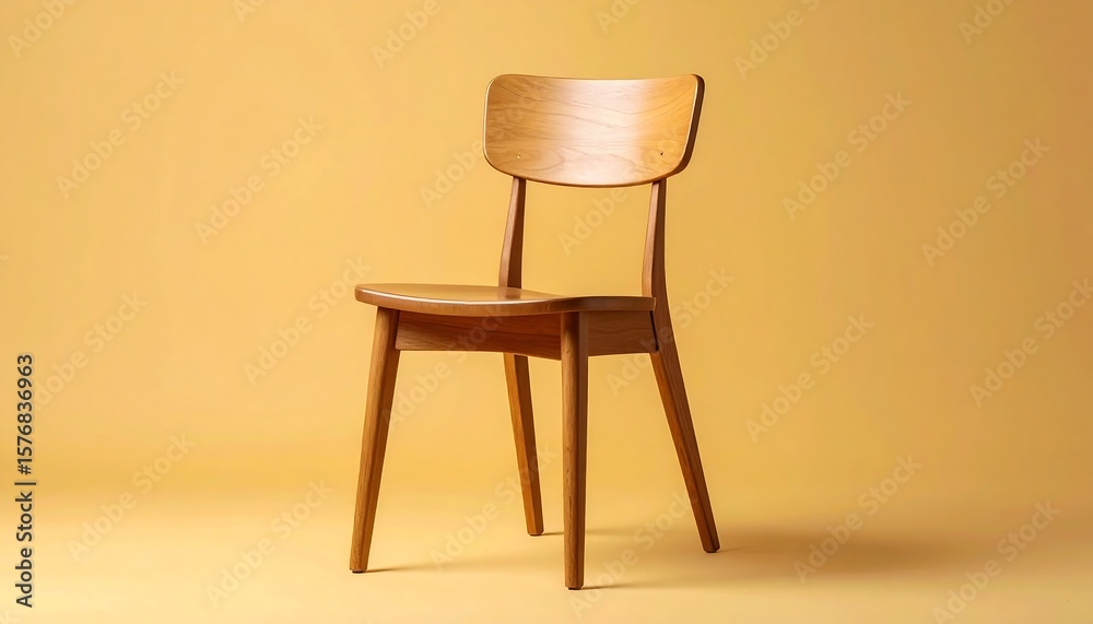 Wooden chair on a minimalist background. Simple wooden chair with a curved back set against a minimalist beige background, ideal for design or furniture concepts.