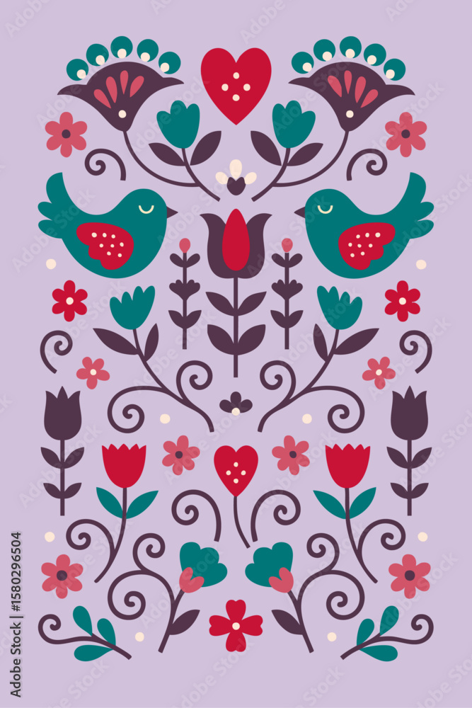 Folk Floral Illustration With Tulips And Vines Wallpaper Mural - Decorly Solutions | Decorly Solutions