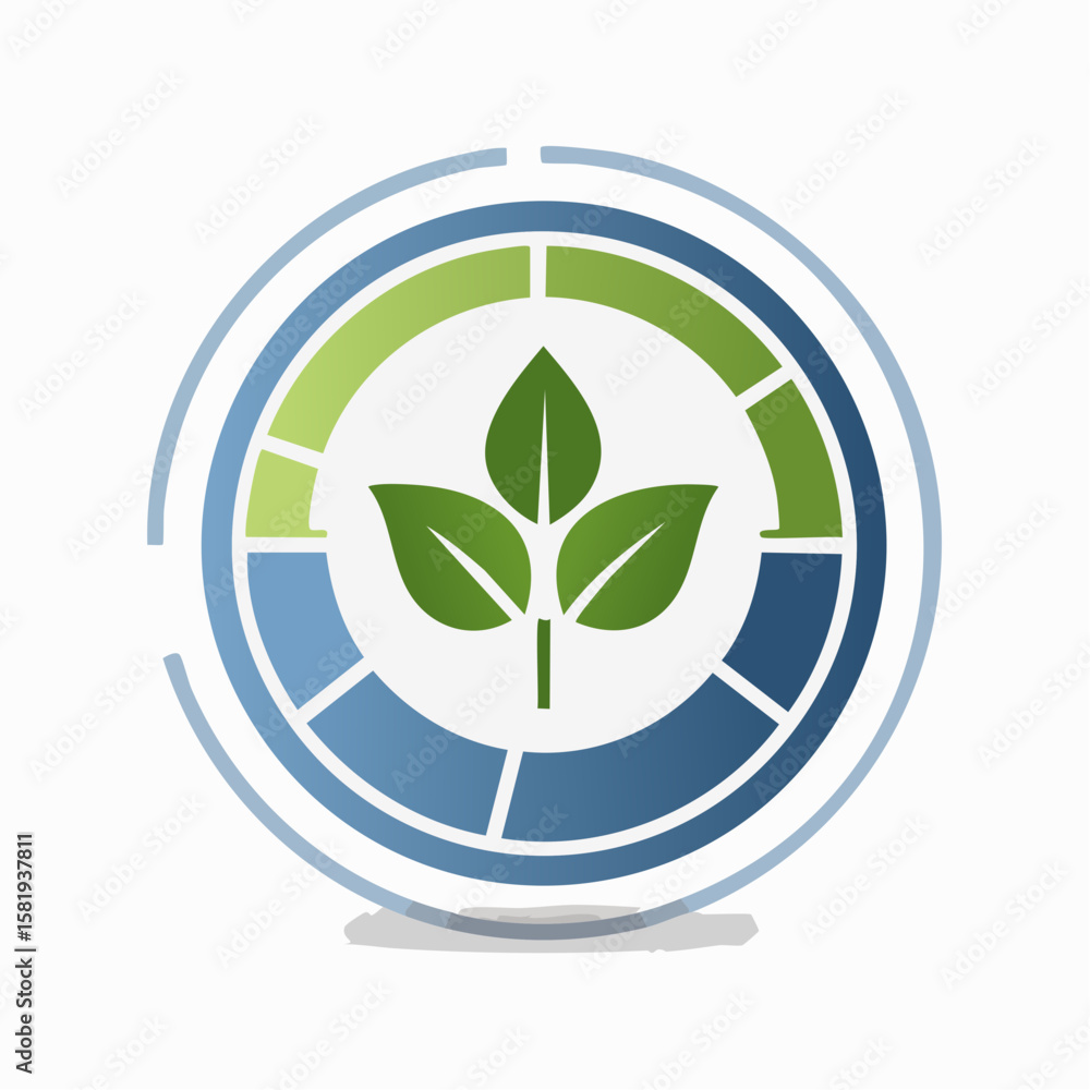Eco-friendly gauge icon with leaves and water droplet in green