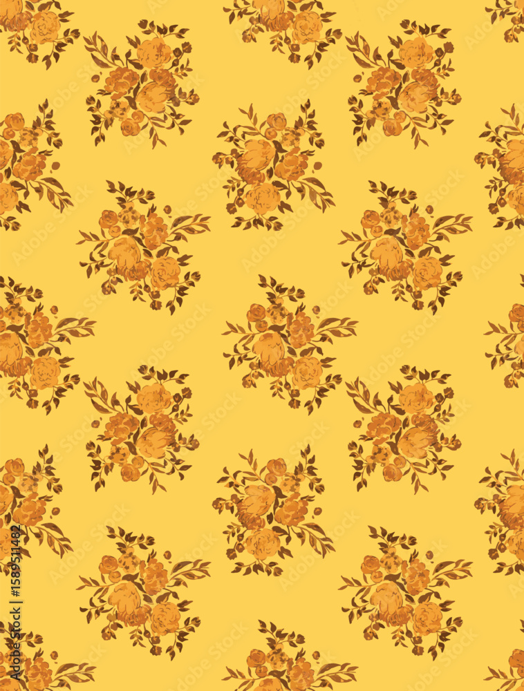 A seamless allover floral pattern featuring delicate blossoms, leaves, and vines in a harmonious arrangement. Perfect for fabric prints, wallpapers, stationery, packaging, and branding projects