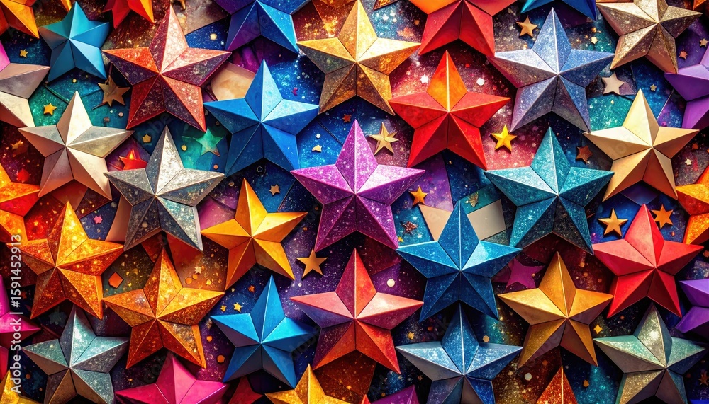 A vivid backdrop featuring a kaleidoscope of colorful geometric shapes, creating a lively and dynamic visual effect.