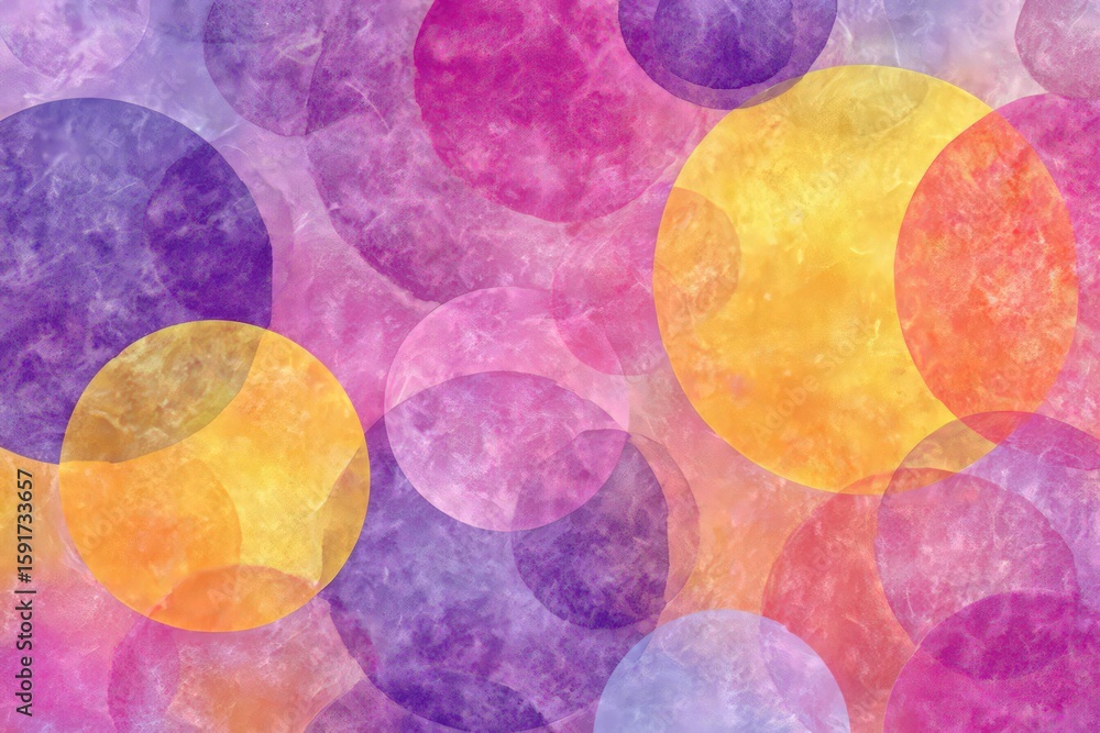 Colorful, watercolor-style overlapping circles in various shades, creating a vibrant, abstract background