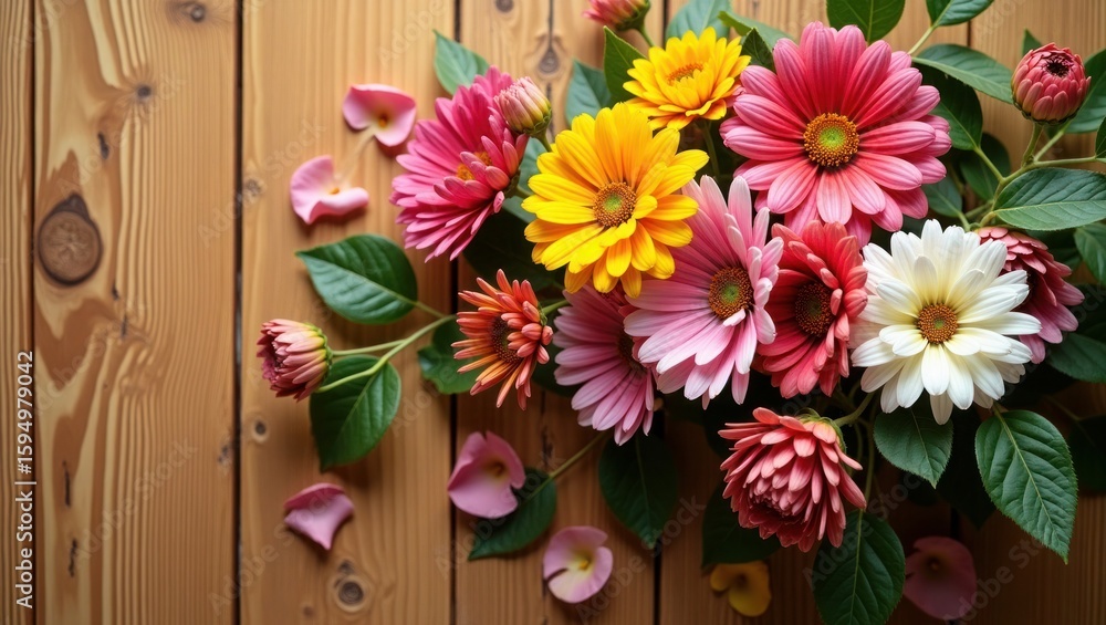 Colorful Daisy Flowers And Petals Arranged On A Wallpaper Mural - Decorly Solutions | Decorly Solutions