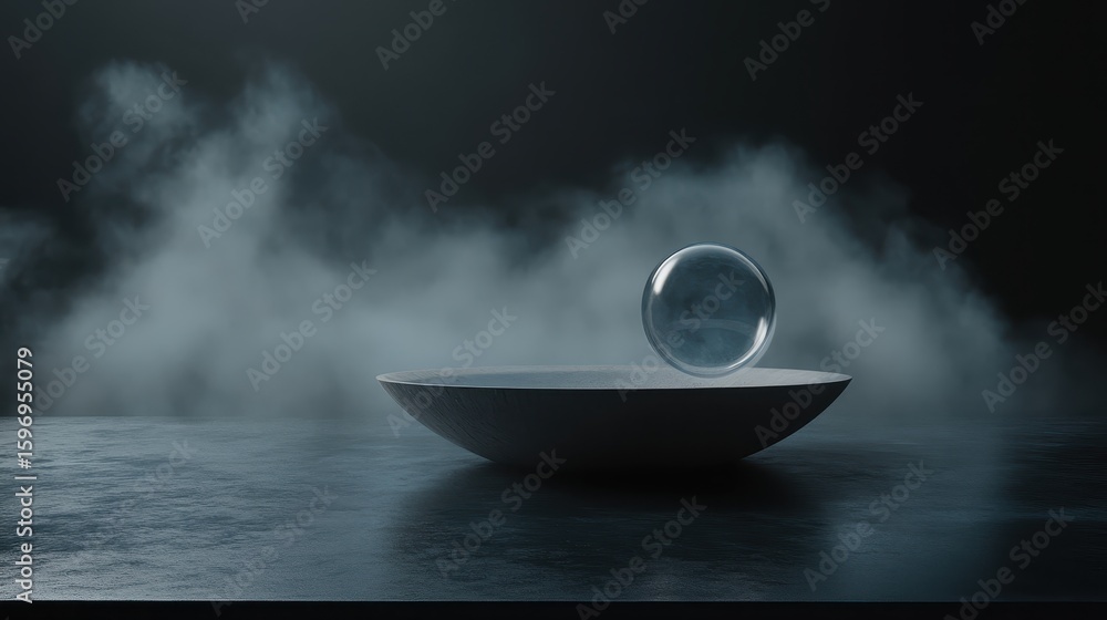 Ethereal Glass Sphere Hovering Above A Minimalist White Wallpaper Mural - Decorly Solutions | Decorly Solutions