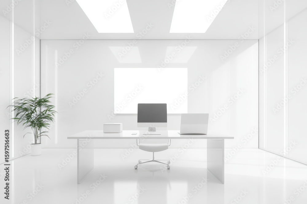 White Office With A Desk And Two Computer Wallpaper Mural - Decorly Solutions | Decorly Solutions