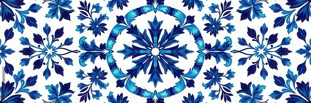 Symmetrical Blue And White Floral Islamic Pattern Elegant Wallpaper Mural - Decorly Solutions | Decorly Solutions