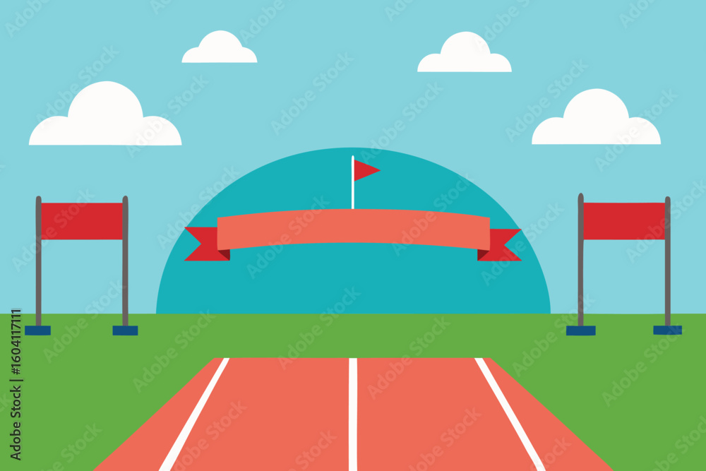 Flat Cartoon Running Track Finish Line Illustration Design Wallpaper