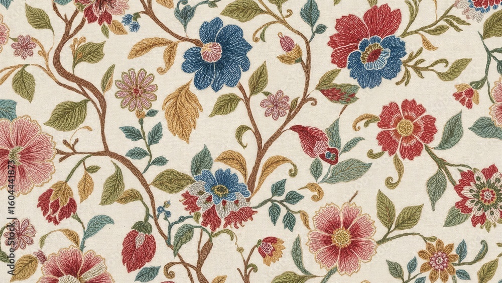 Traditional Floral Art Motif With Intricate Embroidery Details Wallpaper Mural - Decorly Solutions | Decorly Solutions