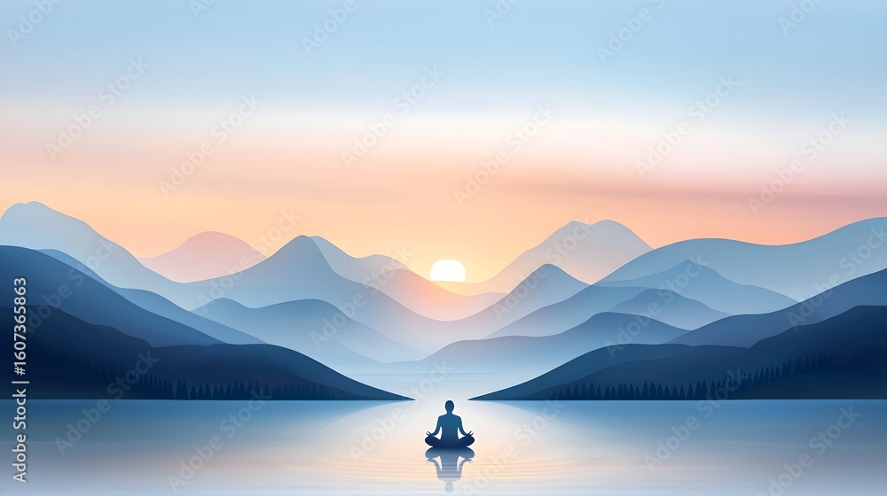 Peaceful Mountain Landscape With A Meditating Silhouette Wallpaper Mural - Decorly Solutions | Decorly Solutions