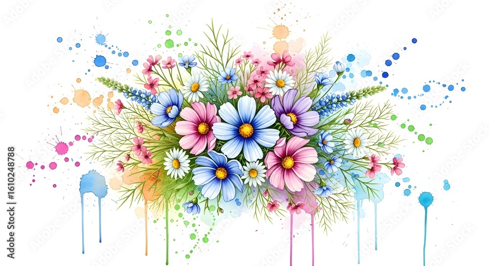 A Colorful Wild Pattern With Flowers And Leaves Wallpaper Mural - Decorly Solutions | Decorly Solutions