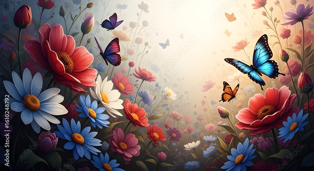 A Colorful Wild Pattern With Flowers And Leaves Wallpaper Mural - Decorly Solutions | Decorly Solutions