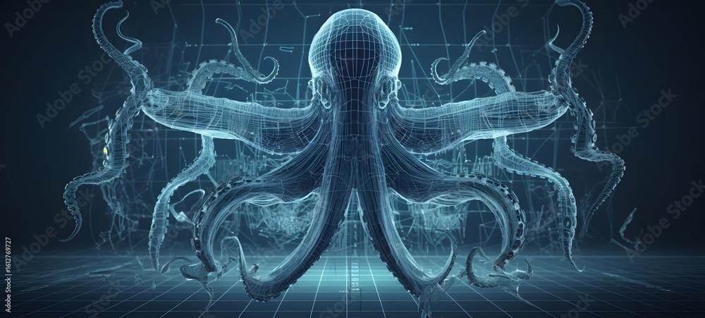 Demonic Kraken Wireframe Generative Ai Wallpaper Mural - Decorly Solutions | Decorly Solutions