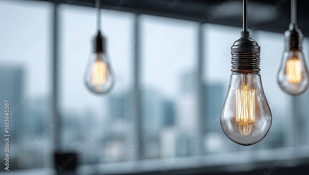 Vintage Edison Bulbs Hanging In A Modern Space Wallpaper Mural - Decorly Solutions | Decorly Solutions
